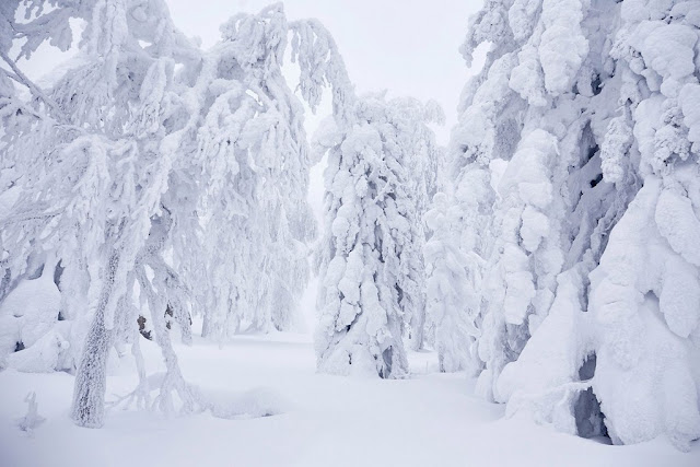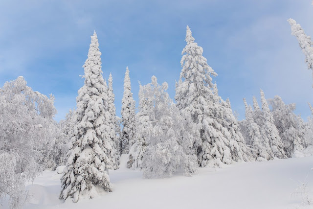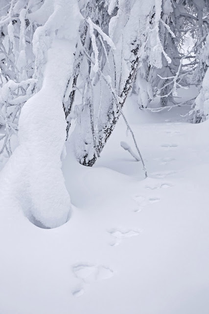 Опять снег, под снегом своя снежная жизнь, кажется что километрами ниже под нами плывут снежные киты и поют свои снежные песни. Гигантский спрут спит, лишь миллионы его щупальц в виде деревьев торчат на поверхности, берегись путник их коснуться, если он пробудится то унесет тебя к себе в белую бездну. Огромные черепахи дрейфуют в толще, их панцири в виде камней показываются наружу и могут внезапно уйти вниз прямо под ногами.