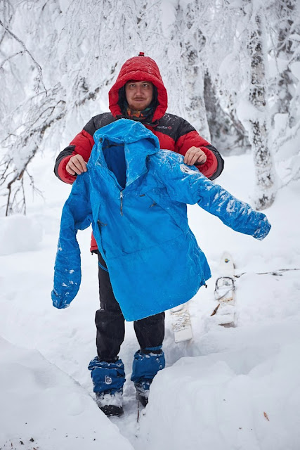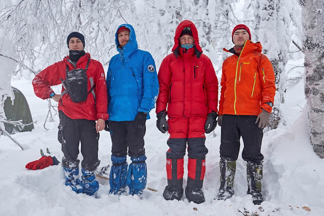 Погода опять была пасмурной, шел легкий снег, тепло. Не очень комфортабельно. Идешь в термобелье, легкой флиске и анораке, снег падает и тает на тебе, пот из-за 100% влажности плохо испаряется (когда тропишь все равно как легко не оденься он есть). В результате ходишь в сырой одежде. Противно. На ходках одеваешь пуховку и она тоже отсыревает. Кто вообще в редфоксе придумал использовать мембрану в пуховке? Дышит то все равно хуже чем просто ткань. Да, первые пару часиков использования капельки растаявшего снега красиво лежат на ткани, потом все мокнет. Через некоторое время остается две тонкие тряпочки вместо куртки - снаружи мембрана внутри прокладка. Работа снега снаружи и конденсата изнутри (куртку накидывал только в статике в лагере и на ходках). Пух в куртках и спальниках на Южном Урале не всегда хорошая идея. А синтетика слеживается... Беда...