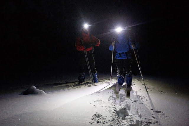 Опять при фонариках вышли в сторону трассы. Снег почти завалили лыжню, приходилось в некоторых местах угадывать, даже по ней идти было достаточно тяжело. Без лыжни даже невозмутимый Саша на модных пластиковых фишерах испытывал желание матерится.