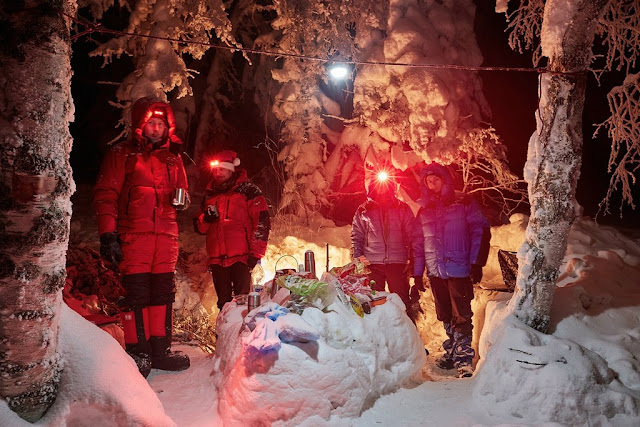 Время 8. Темно, идет снег, пора спать. Артур жалуется что ему не очень хорошо, наполняем термоса и расходимся по палаткам.