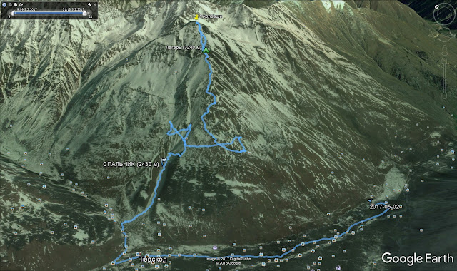 2. Правильная акклиматизация. Мне понравился график акклиматизации разработанный Бертом. Голова не болела, не тошнило, с аппетитом было все хорошо. Максимум одышка. Возможно можно было заложить на пару дней больше, если бы была задача чтобы все в нашей группе поднялись на вершину, набирать высоту немного плавнее и на денек спуститься в Терскол, но мы были ограничены датами майских праздников. В идеале на Эльбрус идти после 2-х недельного горного похода в окрестностях, и акклиматизацию можно более плавную организовать, ну и сам процесс веселее - не надо топтаться по склону туда сюда.
