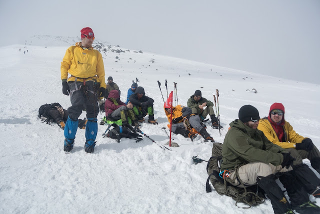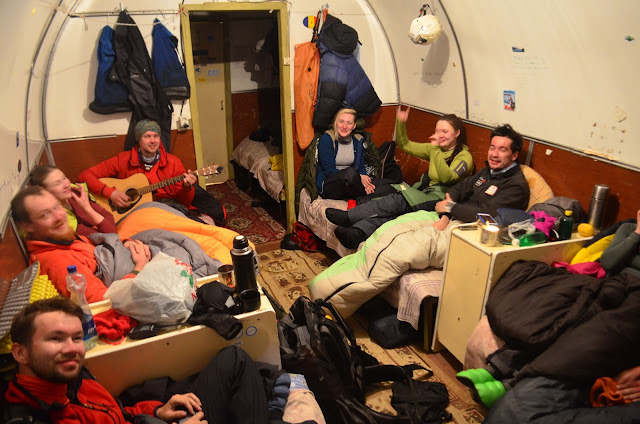 Тут около 10 вечера снаружи шубуршание. Оказывается Ренат, которого сильнее всего крыло горняшкой, начал себя странно вести. Судя по признакам, у него начинался отек легких. Берт - сенсей срочно увез его вниз, сначала на снегоходе, потом на подьемнике. Мне сказал чтобы я с утра повел группу непосредственно на восхождение.