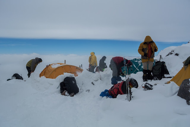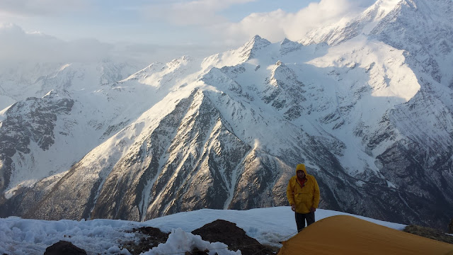 Тут около 10 вечера снаружи шубуршание. Оказывается Ренат, которого сильнее всего крыло горняшкой, начал себя странно вести. Судя по признакам, у него начинался отек легких. Берт - сенсей срочно увез его вниз, сначала на снегоходе, потом на подьемнике. Мне сказал чтобы я с утра повел группу непосредственно на восхождение.