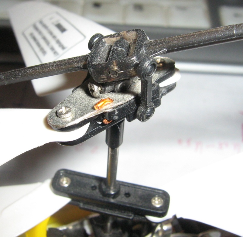 Племяннику привез еще в прошлом году гиру 109 из отпуска (там дешевле было). Из поломок за все время (летный стаж племянника больше моего) крепление винта два раза. Второй раз на фото. По первому не видно. Отломались пластиковые пипки крепления качалки к оси. Поставил стальные. И хвостовой винт уже третий. Сейчас верт ждет новый винт.