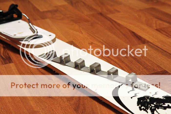 в данном случае планка не закреплена, поскольку с камусом веревки оказались ненужны и я ее снял. полоска алюминиевая, весом можно пренебречь. |