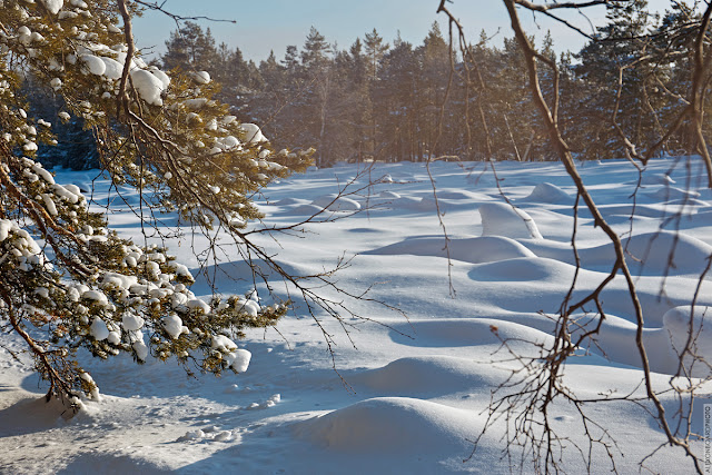 Один из самых неприятных моментов в зимних походах с холодной ночевкой - подъем. У нас он проходил так - первым встает Женя, который спит посередине, одевается, обувается, идет делать костер, следующим Саша, как немного более компактный и менее осыпающий палатку инеем. Это занимает до получаса. Затем я как самый крупный и засоня. Расстегиваю спальник, одеваю куртку, накидываю спальник на минутку прогреть куртку, снимаю лишнее, одеваю штаны, все это аккуратно чтобы не усыпаться конденсатом со стенок, полулежа. С очень большим трудом на ноги водружаются две глыбы льда, по недоразумению называемые ботинками.