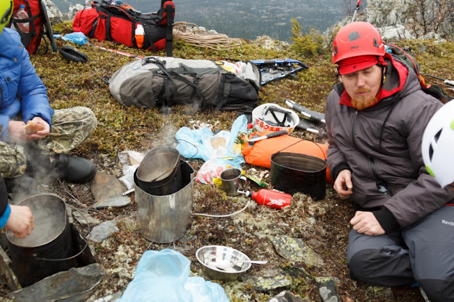 Готовим на горелочке. Еще Лера с Серегой героически встали в следующее утро в 4 часа и опять всех покормили. Ответственные лоси!