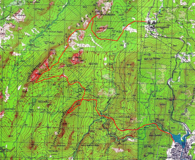 Ближе к темноте встали на ночлег на подходах к 1317 м. За 10 часов ходового времени около 12-15 км пройдено.
