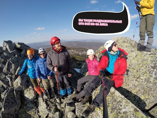 Хотя читая и смотря фоты на людей В КАСКАХ! на "единичке" Южного Урала... думалось, что то поменялось шибко в мире. В конце только прояснился замысел. Нехилый такой подход к скальничку тренировочному выбран