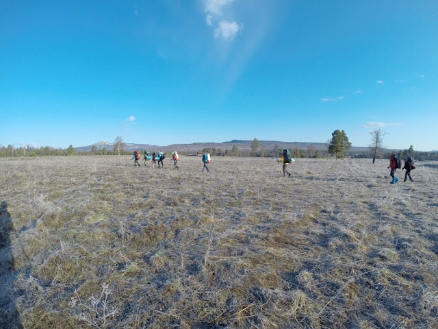 С утра мы двинулись на место трени, идти недалеко, км 5 со всеми зигзагами, но я припас участок с восточного слона хребта, там и подыматься веселее, и ладшафт радует большей трудностью. "Осталось 700 метров по прямой" вошло в историю группы.