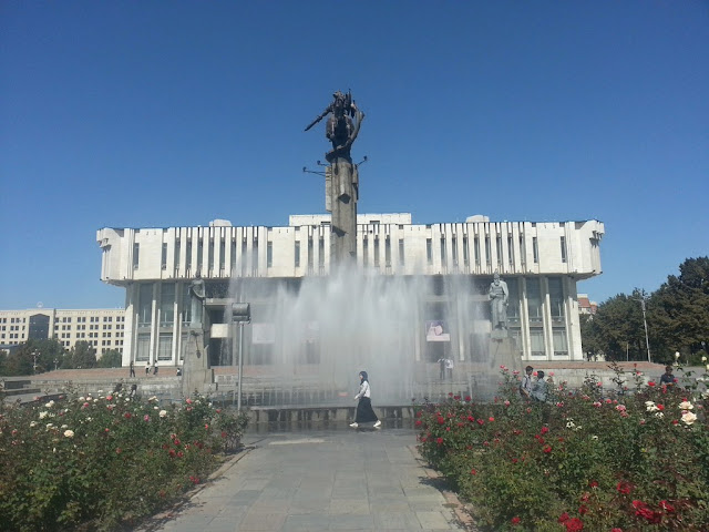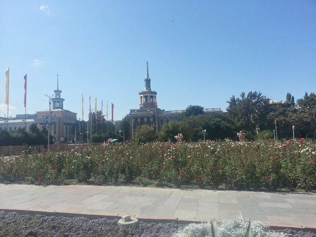 Водитель высадил нас в центре. Мы с Ильей вдвоем пошли за симкой и местными газетами с объявлениями. Симка в Киргизии стоит недорого, без паспорта, регистрация не нужна в течении 30 дней. Газету тоже купили без проблем. А вот с квартирой не повезло, единственное объявление посуточно - однокомнатная квартира, за 2500 сомов, что дороговато (У нас в Уфе на каждом столбе висят объявления про сдачу квартир посуточно - в Бишкеке нет). Илья сунулся в модный хостел, там аж по 700 сомов с человека, еще менее бюджетно. Мы немного пригорюнились и пошли в сторону товарищей, отсуствовали достаточно долго, нас могли потерять.