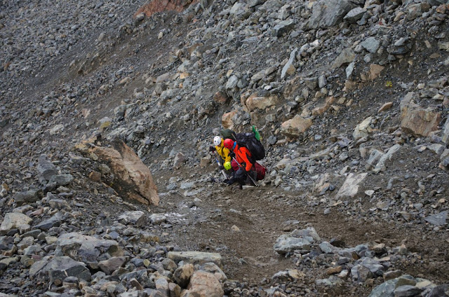 Всех накрыло горняшкой - одышка и слабость. Несколько метров проходишь начинаешь задыхаться. Один Илюха, с акклиматизацией еще с альплагеря, порхает по камушкам счастливый как холодильник.