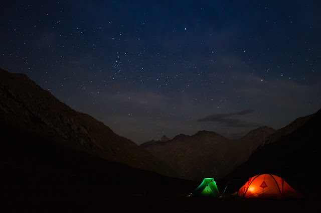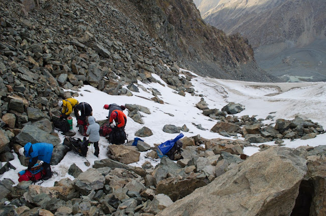 У нас в этот день было запланировано пара интересных перевалов и прогулка по леднику. Встали как всегда достаточно рано, перед рассветом, но скорость сборов Вову как обычно не очень уж и порадовала. Сегодня накрыло Свету Биккузину, вчера она радостно скакала горной козочкой, сейчас же ей было явно тяжело.