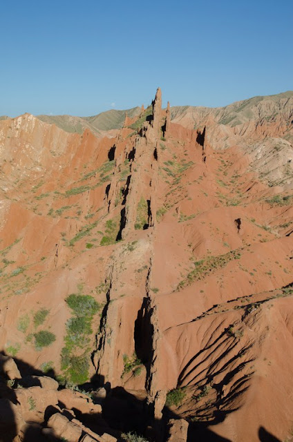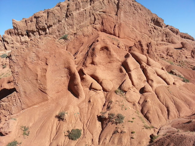 Место без сомнения красивое. Крутые глиняные холмы с каньонами промытыми дождем, засушливая растительность, преобладающий цвет - красный, встречаются разноцветные участки. Само по себе место небольшое - буквально несколько квадратных километров. В одном месте почти насквозь поперек стена из двух пластов более твердой породы.