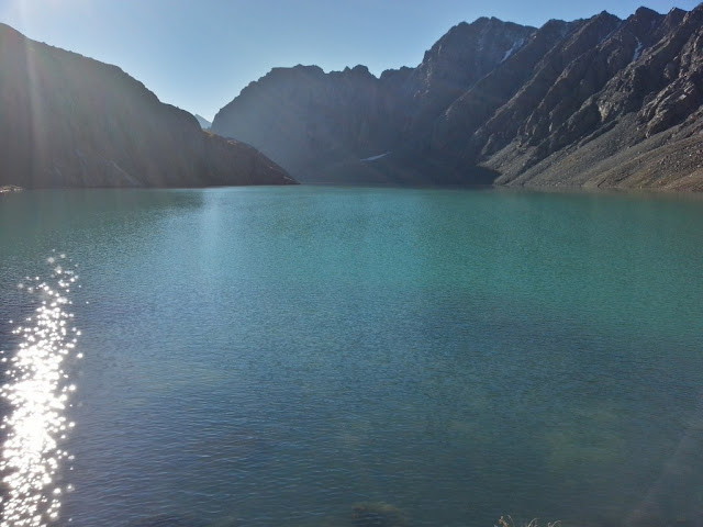 По ущелью движемся в нужную сторону. Прикупили арбуз практически прямо с бахчи. Вова с нашим водителем общаются о местных новостях - у соседей в Узбекистане помер президент, что могло иметь нехорошие последствия вплоть до войны. Так же затронулась тема с не очень хорошим состоянием местной экономики, кризис ударил из за России и по местному населению. Страна само почти ничего не производит, не строит, не развивает, как сказал Вова доедает наследство СССР, основные деньги идут из Китая и России. Почти единственный источник дохода местные золотые месторождения, которые разрабатывают канадцы. Потихоньку разговор перешел на кулинарию - Вова поделился мечтой купить и съесть целого барана. Водитель его поддержал и рассказал что при развале СССР местные колхозы раздали тонкорунных овец, которых всех сразу слопали, и вообще барашки уже не те. Далее перешли на обсуждение способов приготовления бишбармака, разницу между казахским, киргизским и узбекскими вариантами. Мы с Артуром сидели ближе всего к обсуждающим и чуть не захлебнулись слюнками ) Так же водитель рассказал про одного туриста- менеджера из Москвы, который каждый год прилетает сюда, тратит кучу денег, берет пару портеров и гида, и так многих достал свой манерой ходить, высокомерием и приторможеностью, что даже как то был бит одним из носильщиков.