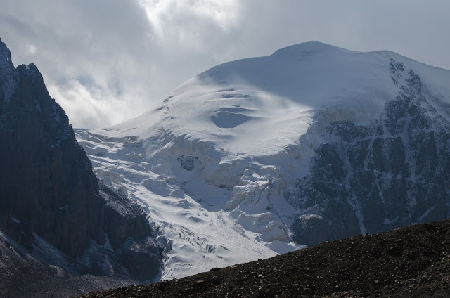 По центру вид на перевал Рижан ложный. Блин как опенок, только ледник.