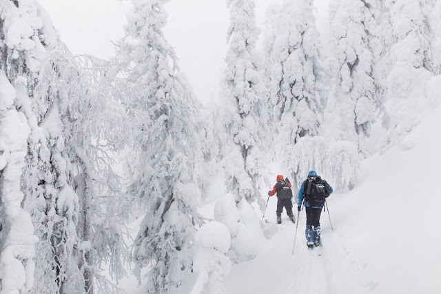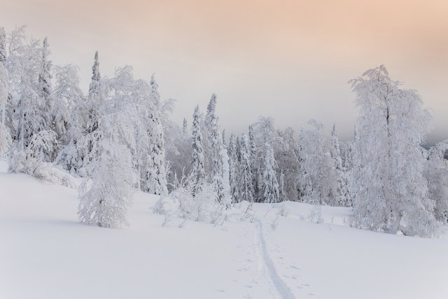 Опять снег, под снегом своя снежная жизнь, кажется что километрами ниже под нами плывут снежные киты и поют свои снежные песни. Гигантский спрут спит, лишь миллионы его щупальц в виде деревьев торчат на поверхности, берегись путник их коснуться, если он пробудится то унесет тебя к себе в белую бездну. Огромные черепахи дрейфуют в толще, их панцири в виде камней показываются наружу и могут внезапно уйти вниз прямо под ногами.