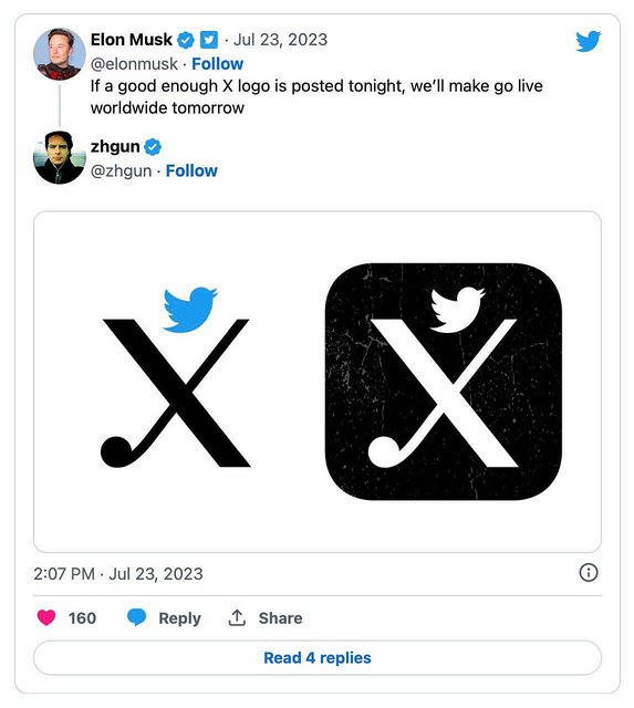 Новый логотип Твиттера после того как Маск заявил что им будет буква Х