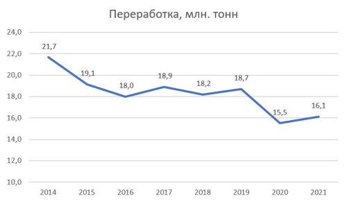 Переработка НПЗ "в пол" - "пол" это сколько? А до этого сколько было? Там глядишь и не в пол окажется, а просто немного ниже. Оно и понятно почему