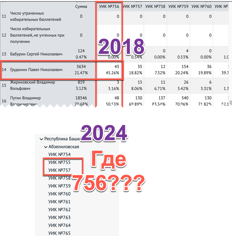 Значит в 2018 был УИК №756 который Грудинину дал аж 45%